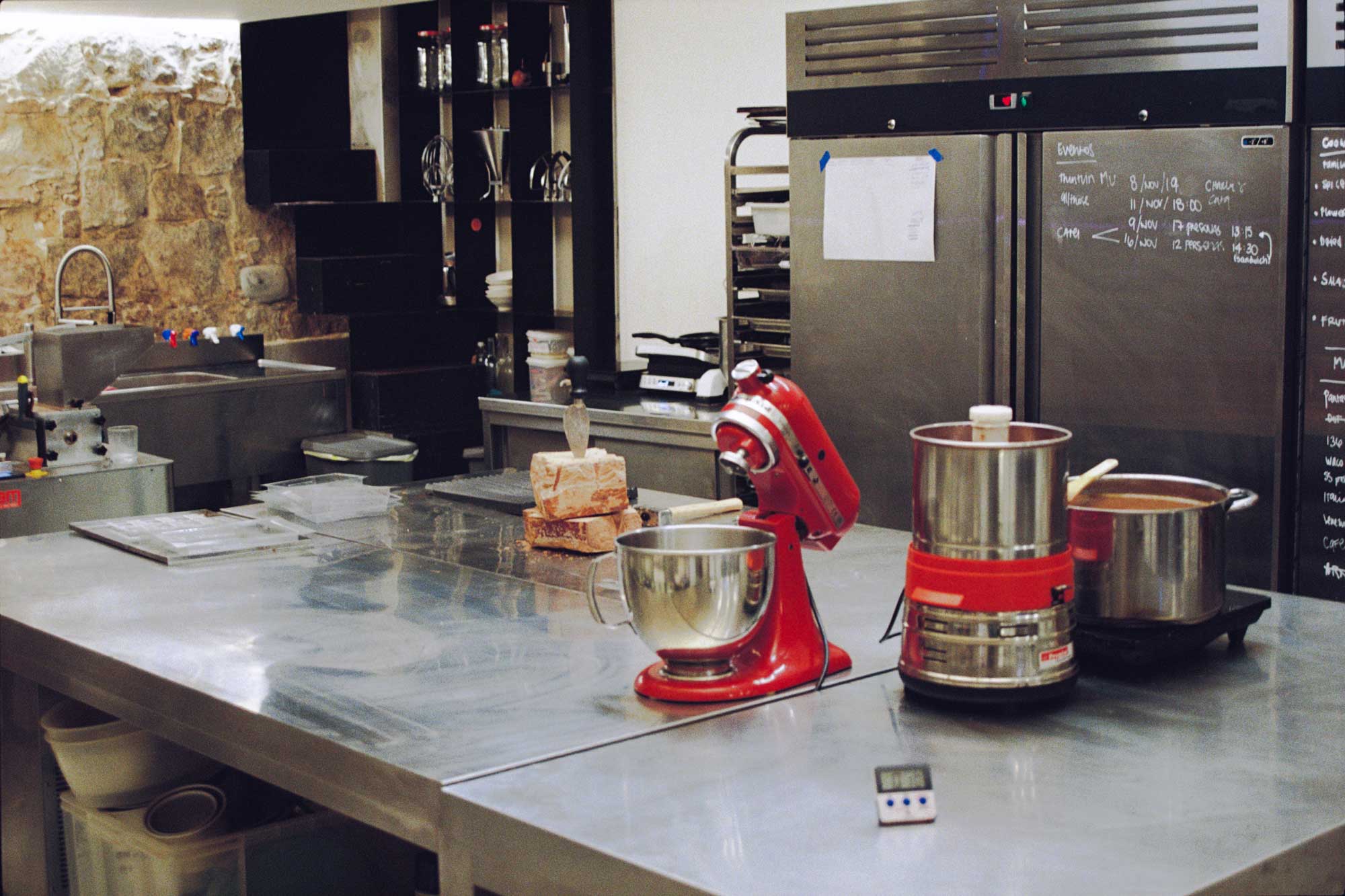 這是一個舊紡織廠改造成工作室、商店和咖啡廳三合一空間。設計簡約,色調中性。開放式的空間傳達出與創辦人Cristian和Úrsula同樣的親和力,大片玻璃窗讓人可以直接觀看巧克力的製作過程。