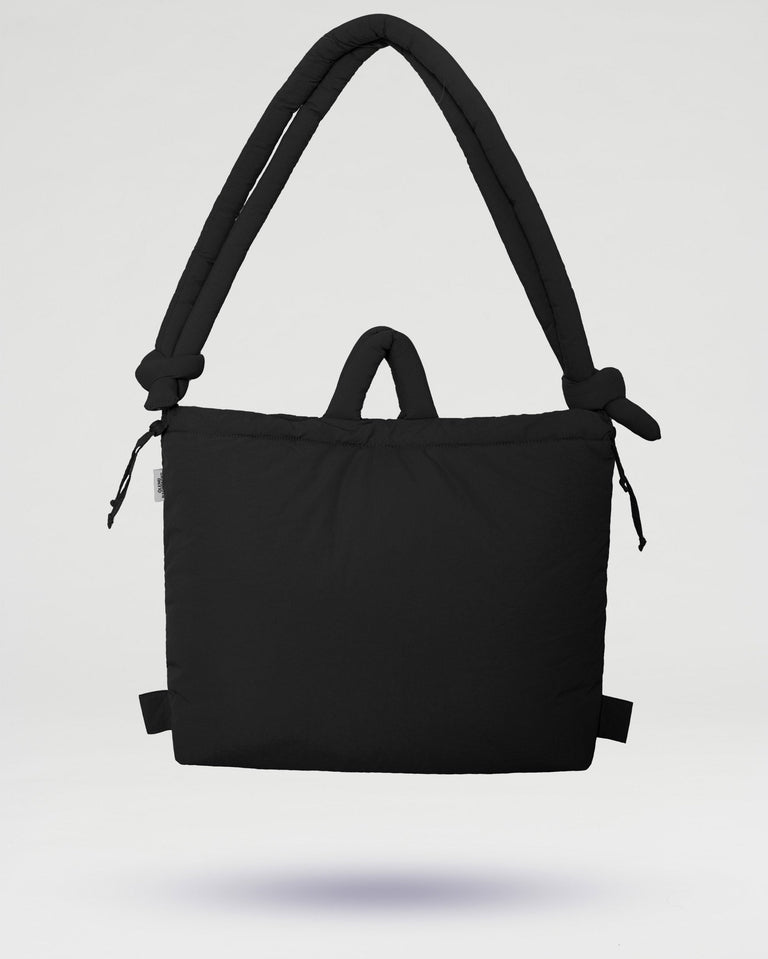 Ölend品牌的Black Large Ona軟包。這款包是該系列中最大尺寸,提供寬敞空間容納所有必需品及更多,非常適合週末短途旅行或日常使用。其多功能設計可作為背包或肩背包使用。兼容最多17吋筆電,採用輕量防水尼龍製成。
