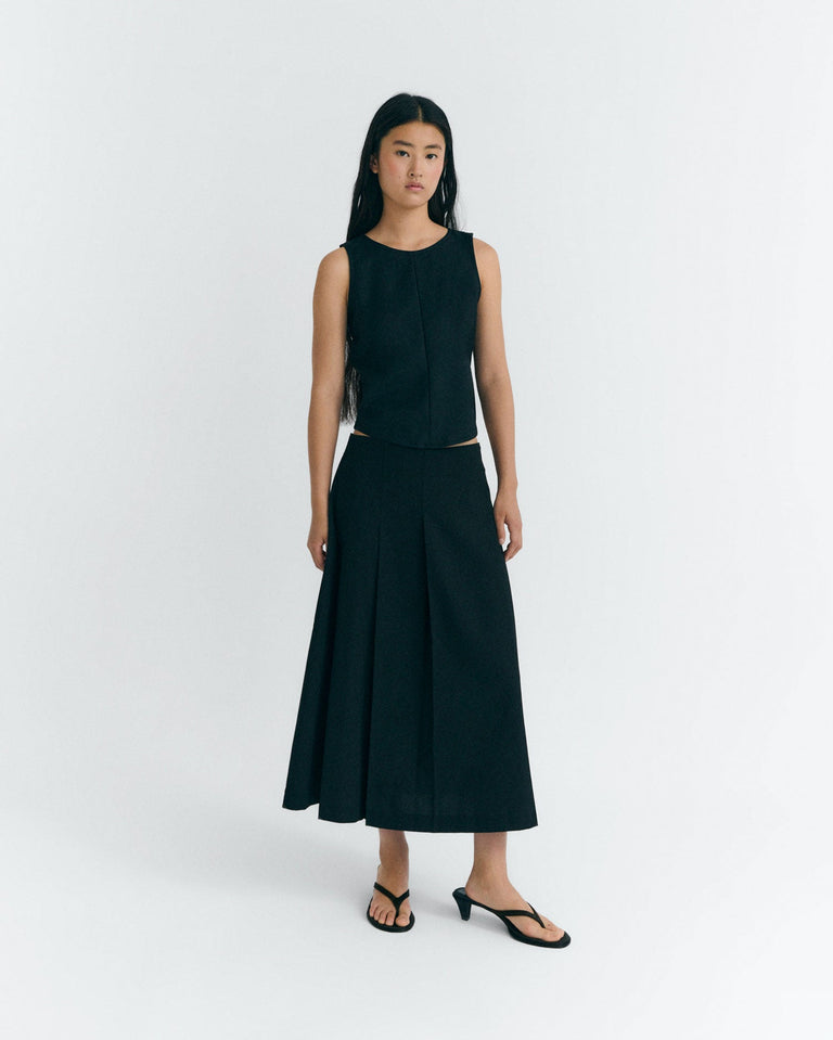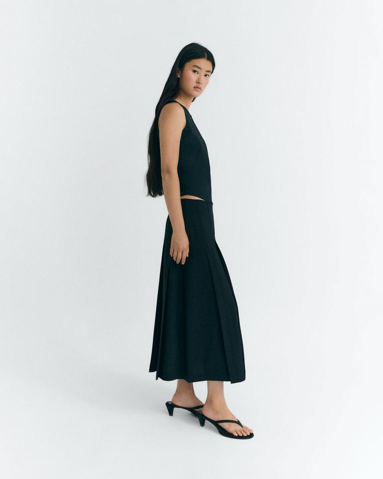 → Detalle de la prenda: Bajo acabado con tablas en delantero