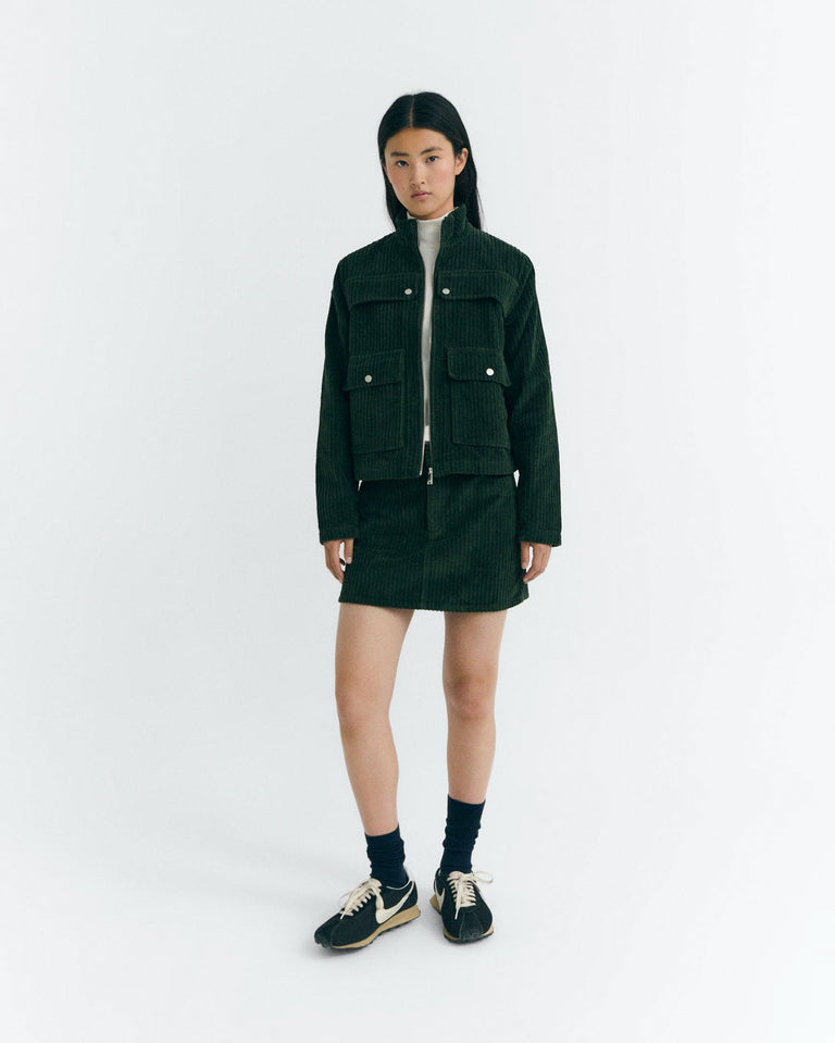Falda mini pana verde Kimmy hecha de algodón orgánico