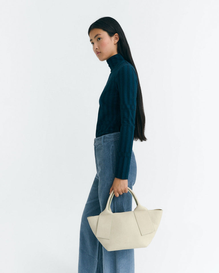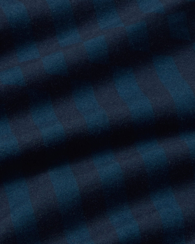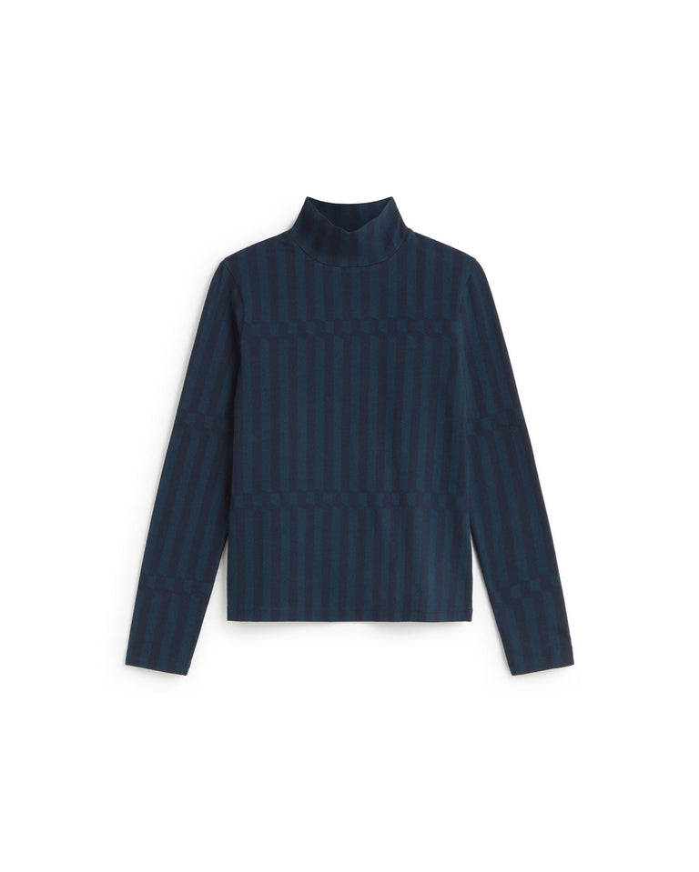 Top rayas azul esque Ellen hecho de algodón orgánico diseñado en colaboración con la artista y diseñadora Júlia Esqué, que ha creado distintos estampados inspirados en la cestería y el trabajo artesanal, a partir de papeles de colores.