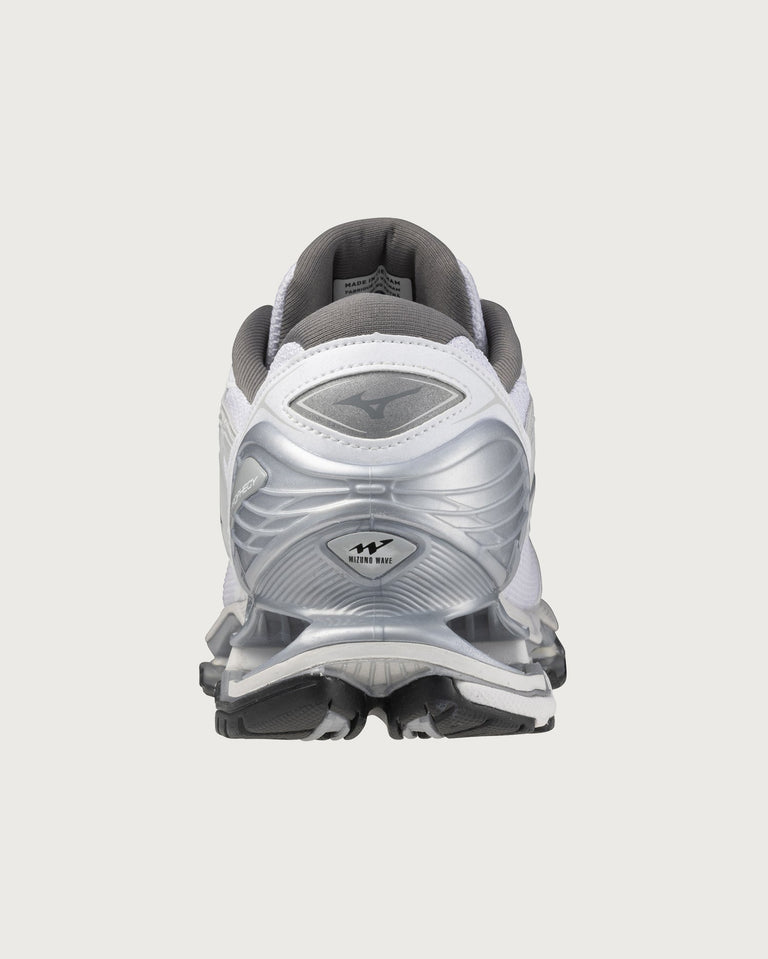 Zapatillas plateadas Wave Mujin TL GTX de la marca Mizuno. Para su colección Tech-Advance. Esta colección representa las siluetas más innovadoras, ilustrando las décadas de investigación y desarrollo de la división de calzado Mizuno.